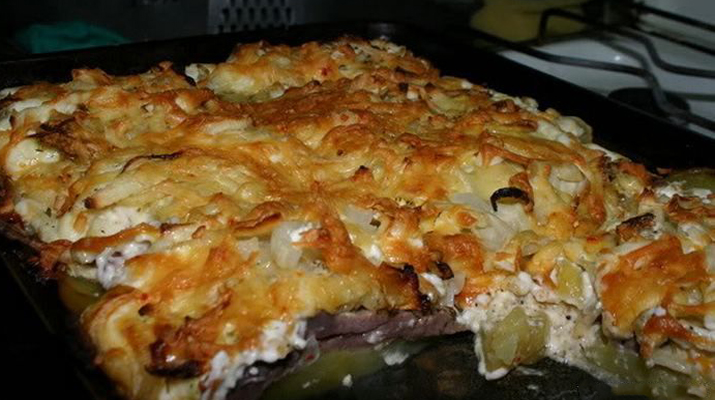 Как приготовить мясо по-французски с картофелем, с помидорами.